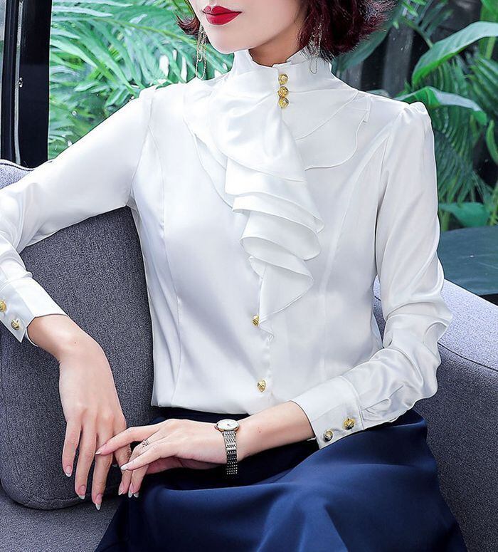 ブラウス レディース フリル 立ち襟 長袖 トップス 無地 きれいめ 大人 シンプル カジュアル ビジネス 事務服 仕事 通勤 20代 30代 40代 50代 春 夏 秋 冬qianjin05 | オキナ商店