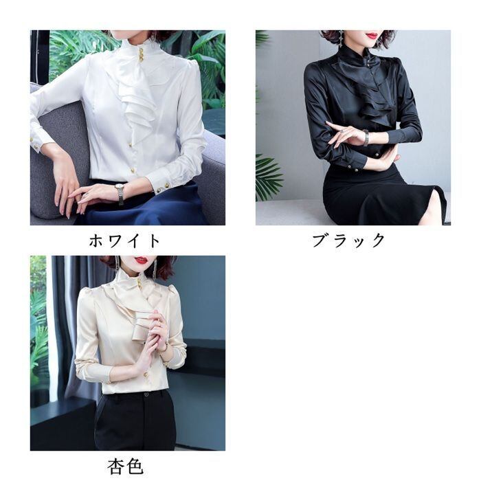 ブラウス レディース フリル 立ち襟 長袖 トップス 無地 きれいめ 大人 シンプル カジュアル ビジネス 事務服 仕事 通勤 20代 30代 40代 50代 春 夏 秋 冬