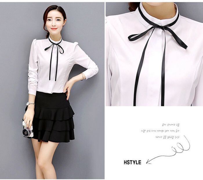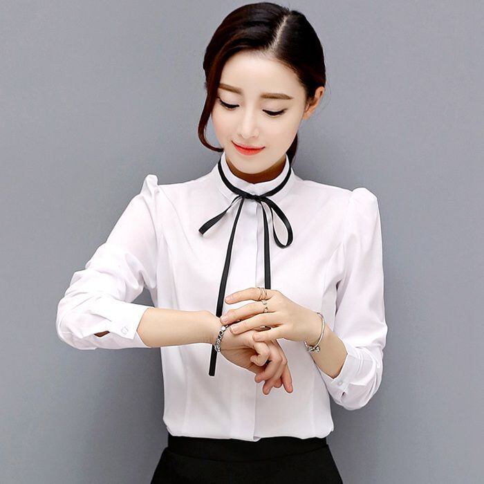 ブラウス レディース リボンネック リボン 立ち襟 長袖 トップス 無地 春 夏 秋 冬 きれいめ 大人 シンプル カジュアル 事務服 仕事 通勤 ビジネス 20代 30代 40代 50代qianjin04 | オキナ商店