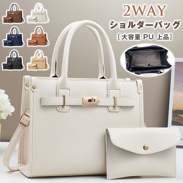 ショルダーバッグ レディース 2way 2点 ポーチ付きトートバッグ ハンドバッグ 肩掛け 手提げ バッグ 大容量 PU 上品 大人 おしゃれ 鞄 通勤 OL ママ 20代 30代 40代