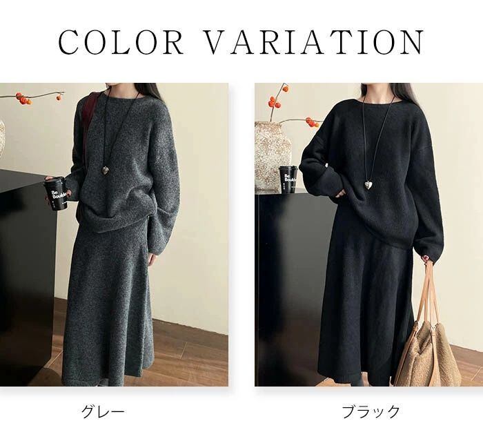 ニット セットアップ レディース 秋冬 春 セットアップ ニットセーター プルオーバー クルーネック セーター 長袖 ニットスカート ロング丈 マキシ丈スカート ゆったり シンプル カジュアル 2点セット 上下セット 上品 通勤 オフィス