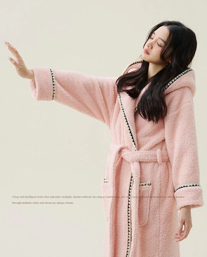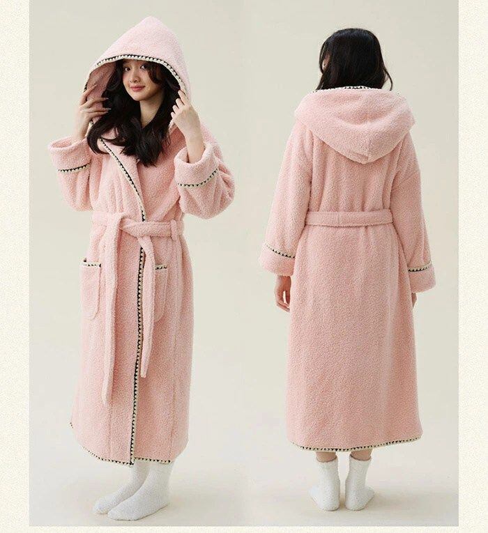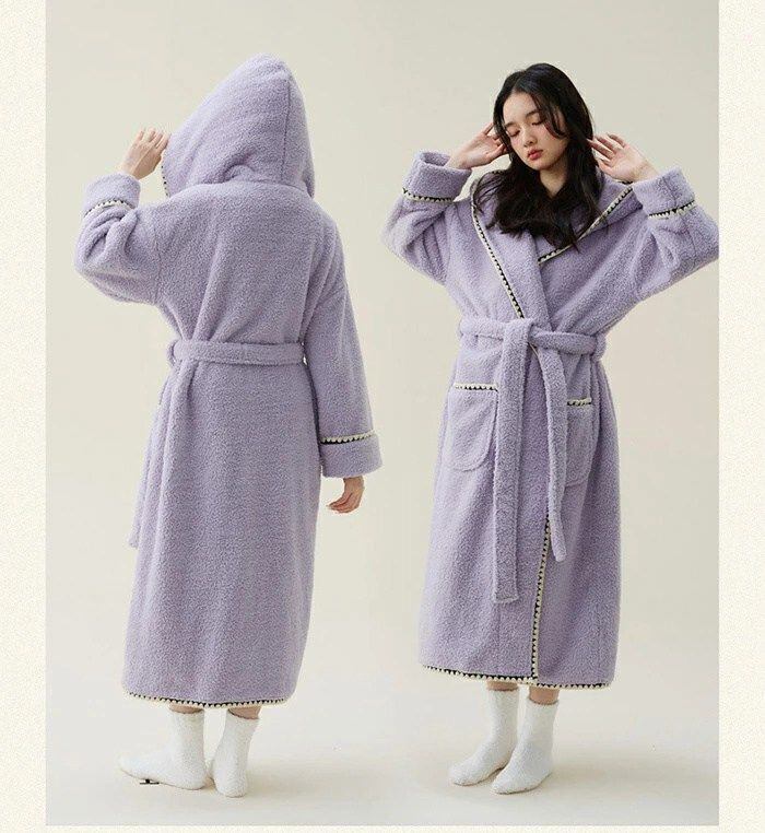 バスローブ レディース メンズ パジャマ ガウン ナイトガウン ルームウェア 男女兼用 秋冬用 着る毛布 寝巻き フード 吸水 タオル生地 無地 柔らか ソフト 速乾 可愛い 長袖 ナイトウェア あったか xiaokb172 | オキナ商店
