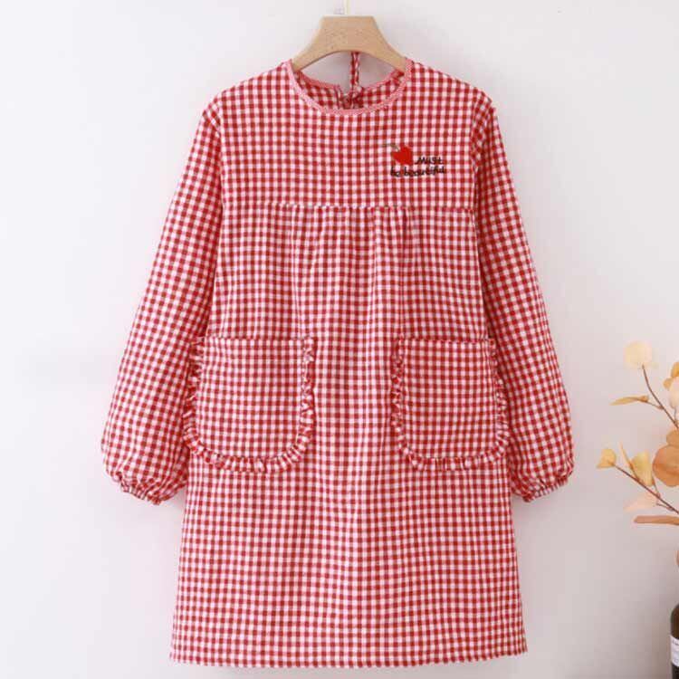 かっぽう着 割烹着 かわいい エプロン かっぽうぎ おしゃれ 長袖 ママ 長袖エプロン 袖付き 料理 家事 カフェ 保育士 母の日 ロング丈 ポケット付き チェック柄 レディース#cjfj141182 | オキナ商店