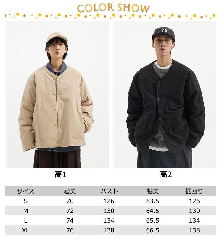 ノーカラージャケット 防寒コート ブルゾン アウター リバーシブル 中綿コート XL ジャケット メンズ 厚手 暖かい カジュアル アメカジ ゆったり M L 中綿ジャケット#cjfj141163 | オキナ商店
