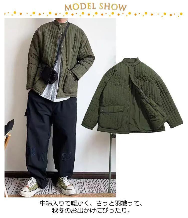 中綿入りで暖かく、さっと羽織って、秋冬のお出かけにぴったり。