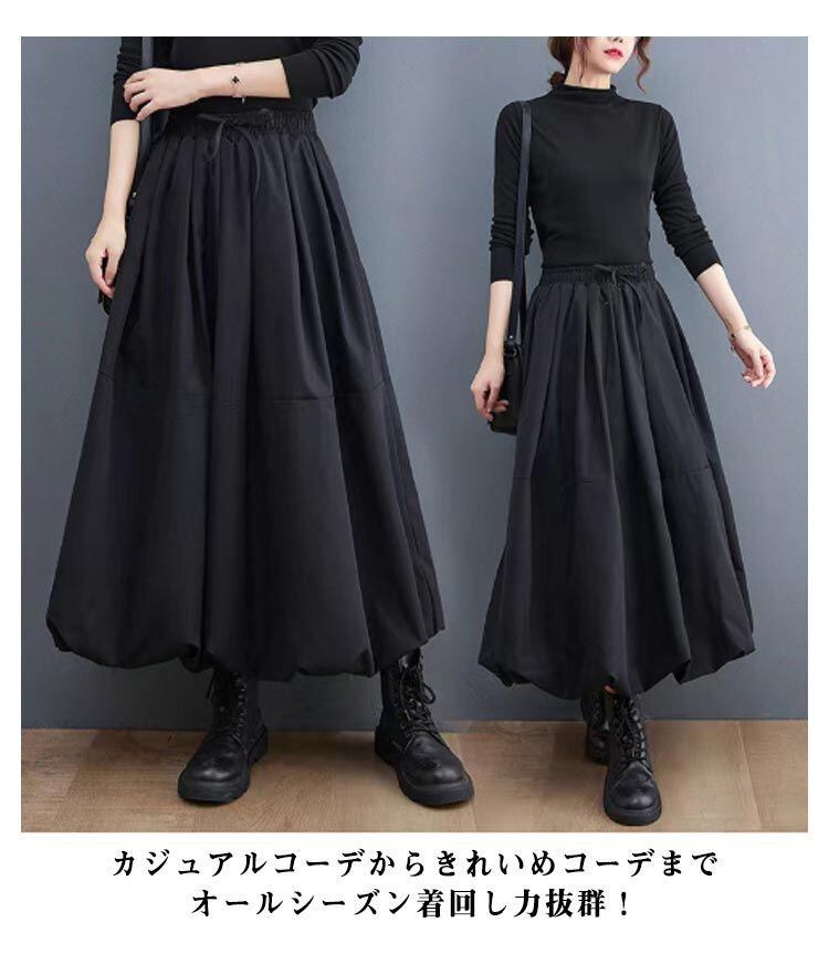 春 ロング ロングスカート スカート レディース バルーンスカート ボトムス カジュアル フレアスカート 秋 大きいサイズ ミモレ丈 スカート きれいめ ウエストゴム シンプル M L XL 2XL #rabub595402 | オキナ商店