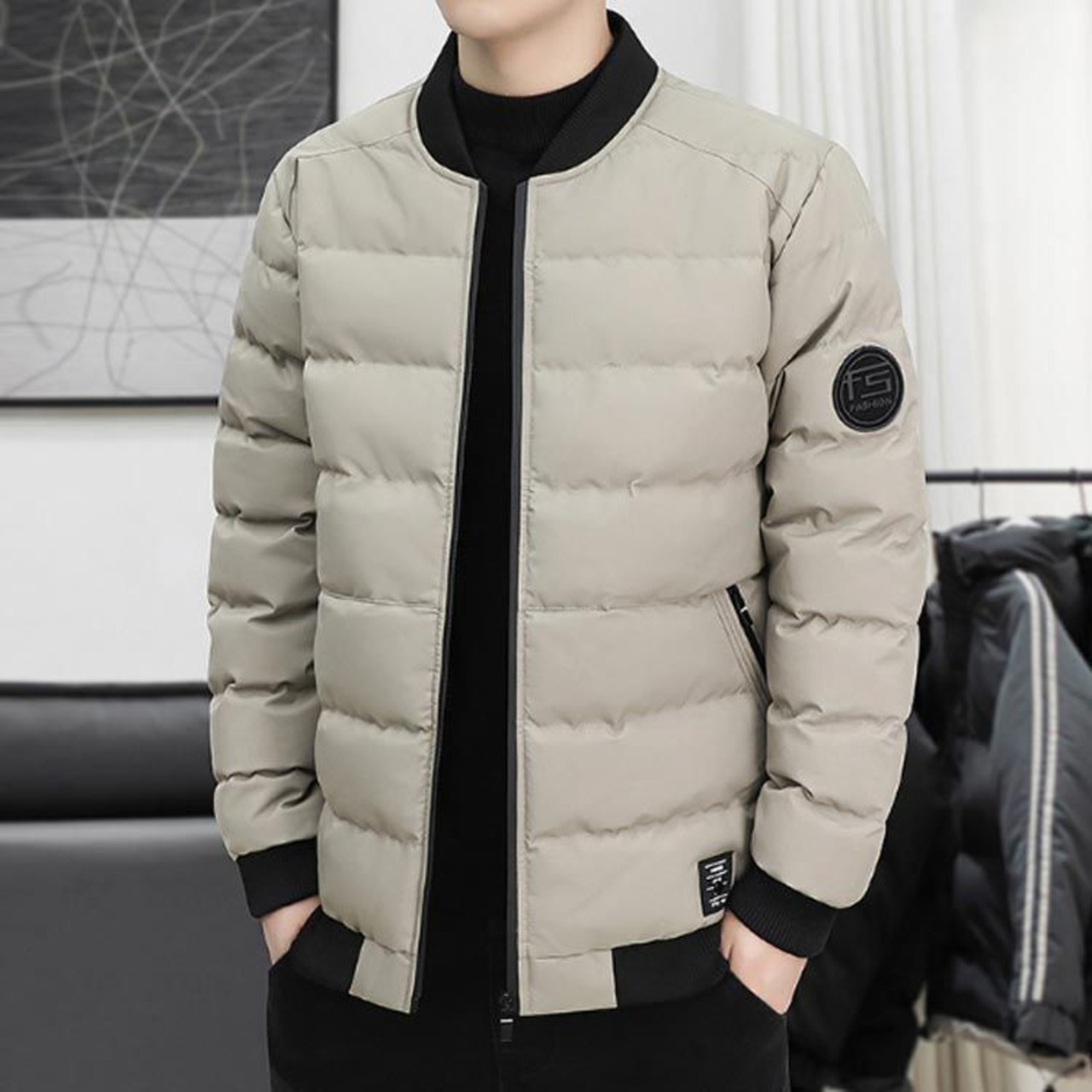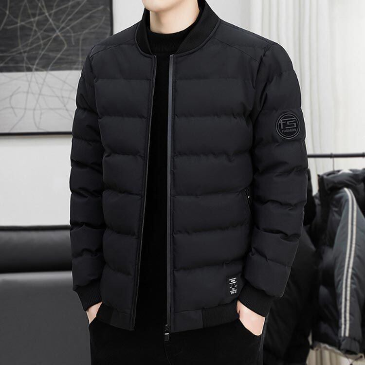 かっこよく見えるリブ襟中綿ジャケット。