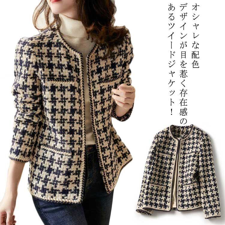 ジャケット レディース ツイード 春服 長袖 アウター ショート丈 入学式 卒業式 入園式 卒園式 母親 ママ 結婚式 フォーマル カジュアル オフィス お宮参り 七五三 20代 30代 40代 50#bon2106 | オキナ商店