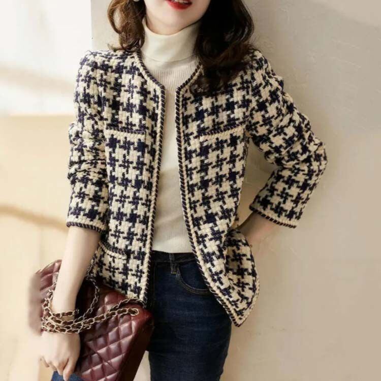オシャレな配色デザインが目を惹く存在感のあるツイードジャケット!