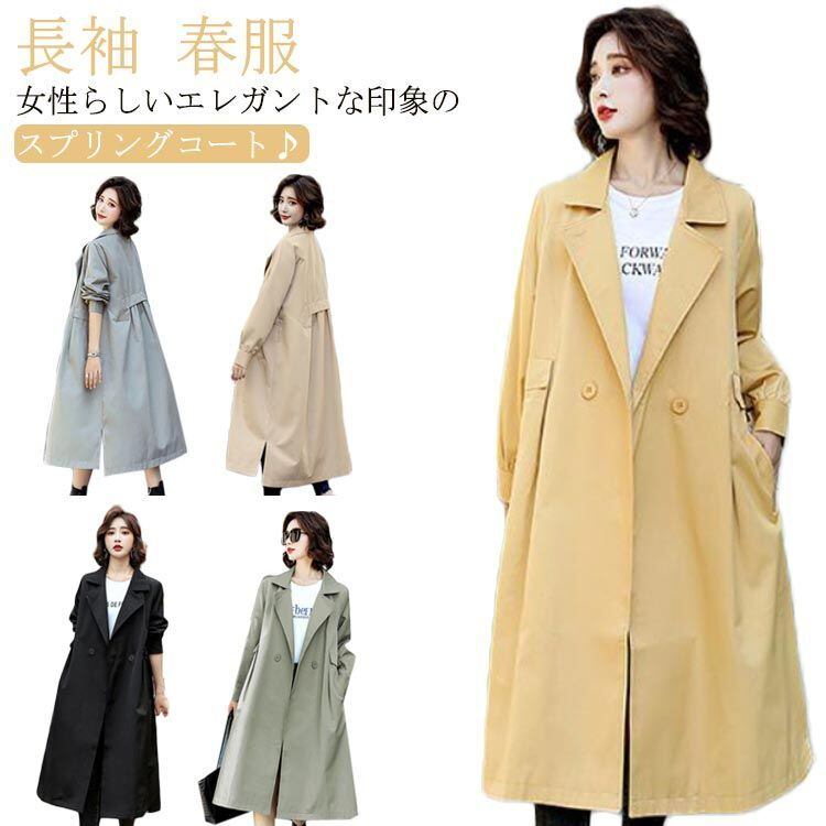 トレンチコート レディース スプリングコート 春コート 春物 春服 無地 ロングコート 長袖 ライトアウター カジュアル 大きいサイズ 体型カバー キレイめ 通勤 通学 オフィス 30代 40代 50#bon2099 | オキナ商店