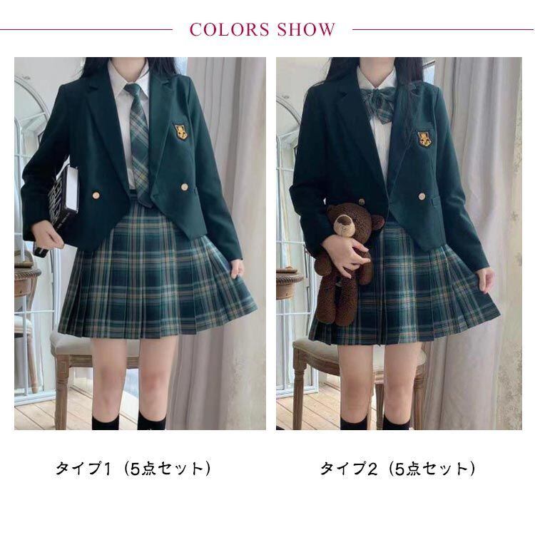 5点セット:ジャケット、スカート、ブラウス、リボン或いネクタイ、の5点セットです。