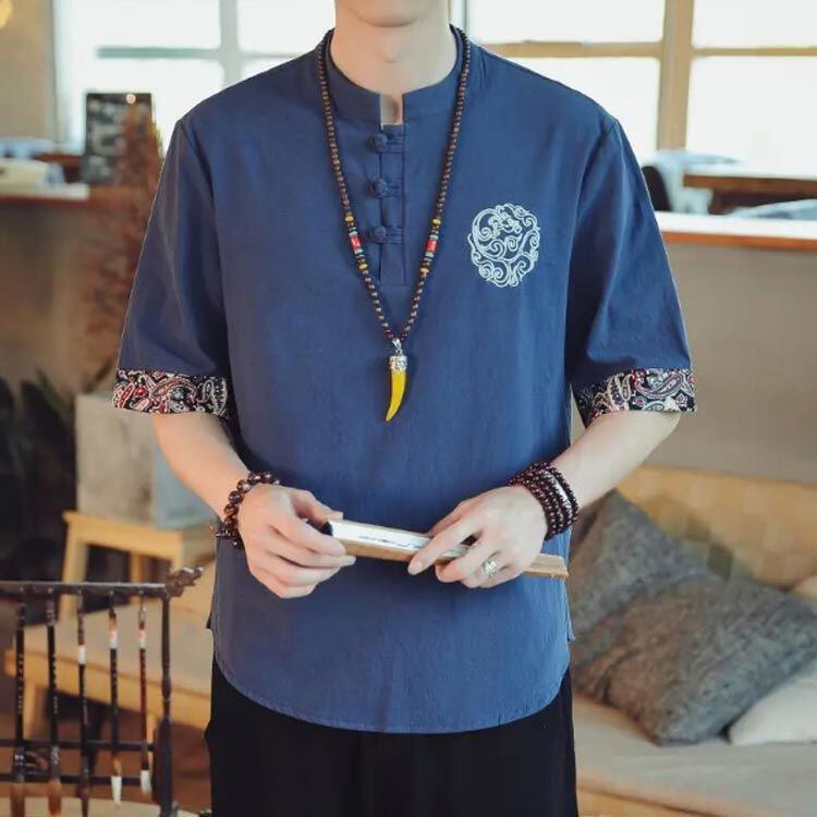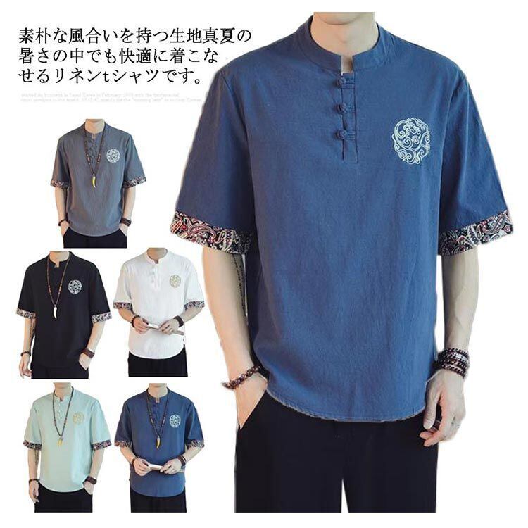 送料無料 中華風tシャツ 半袖tシャツ メンズ 五分袖tシャツ エスニック柄 リネンtシャツ 中華風tシャツ tシャツ トップス 麻 麻混 カジュアル 中華風 薄手 夏 秋 大きサイズ#dkhsh591839 | オキナ商店