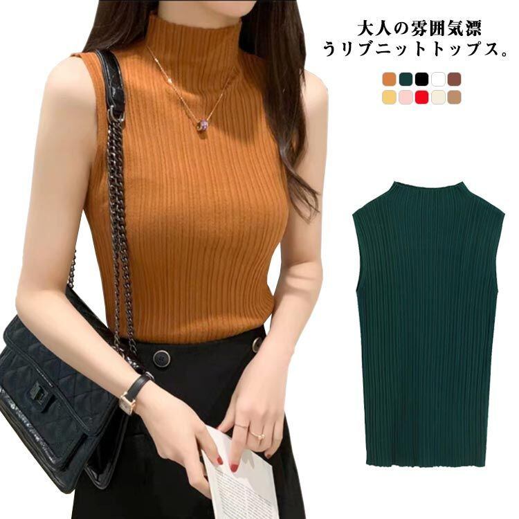 レディース 袖なし リブニット ハイネックニット きれいめ コンパクト 送料無料 リブ ストレッチ カジュアル オフィス ノースリーブニット ハイネック 無地 春 着回し 夏 ノースリーブニット 秋#dkhsh591815 | オキナ商店