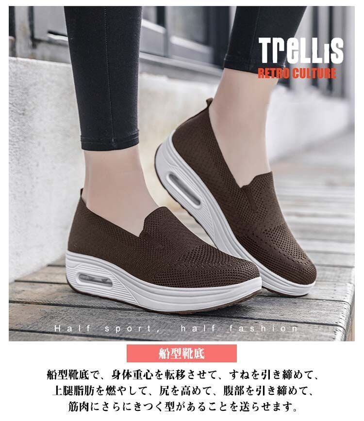 【姿勢矯正】靴底は人体工学工学よりの船型設計、歩くと脂を燃やして、フィットネス強化、美脚効果、PUの靴底はソフトで減振は快適です。歩くだけで全身の筋肉が活性され、基礎代謝の向上、血液の循環がよくなり、カロリー消費量の増加により、ダイエット効果があります。