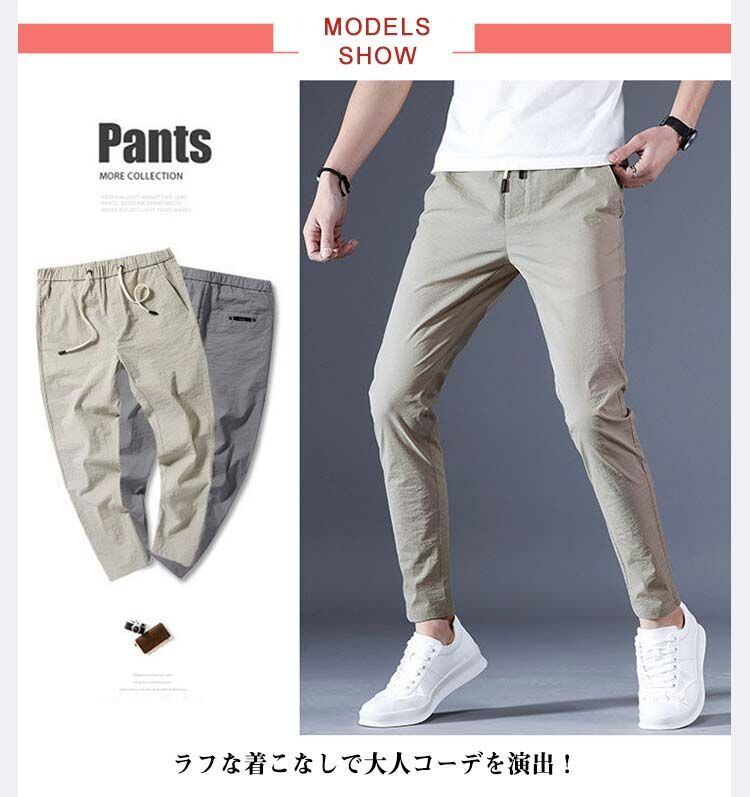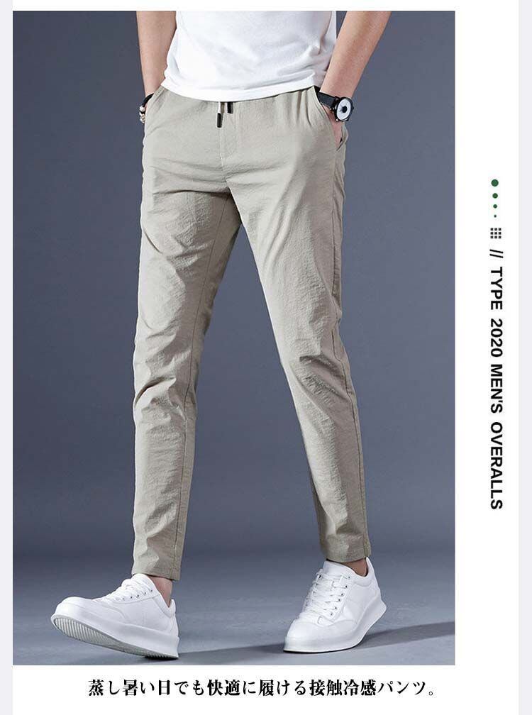 メンズ ひんやり 冷感パンツ 接触冷感 薄手 パンツ 夏 ロングパンツ ストレッチ スキニー 長ズボン スキニーパンツ 美脚 チノパン ゴルフパンツ 通気 涼しい スポーツ カジュアル 無地 おし#sowa6586535 | オキナ商店