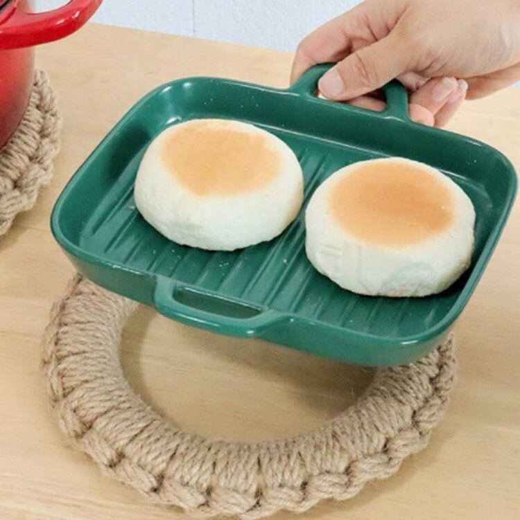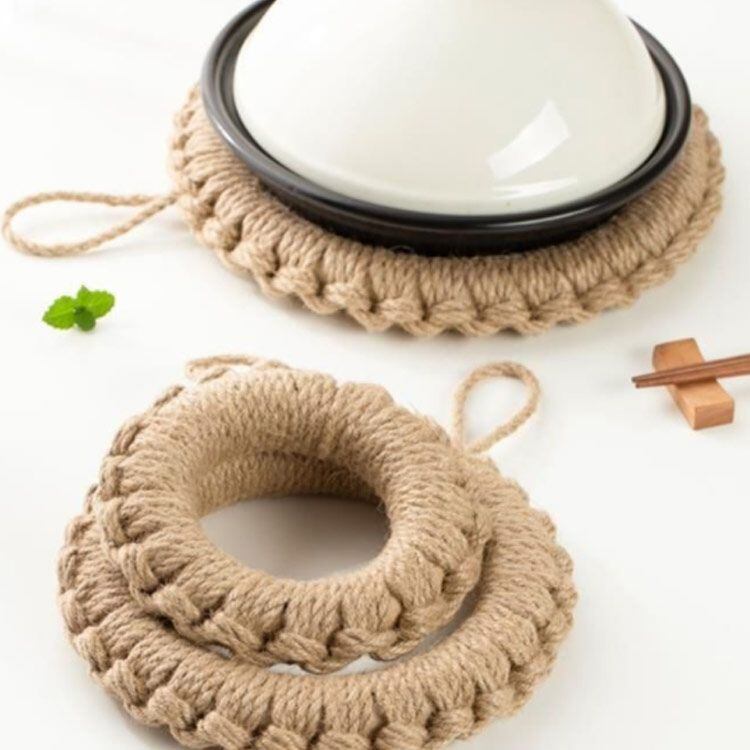 繊維で編まれた鍋敷は、藁よりもやわらかな手触りでテーブルなど傷つけず軽くて丈夫です。