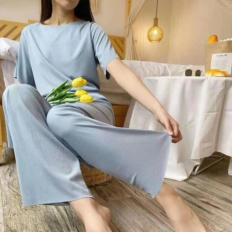 涼しい寝巻きセット可愛いパジャマ無地ゆったり薄手部屋着
