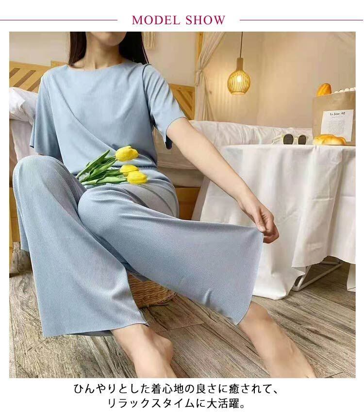 セットアップ 上下 夏 冷感 レディース ルームウェア ロングパンツ パジャマ 半袖 ボトムス 接触冷感 長ズボン 可愛い ゆったり サラサラ レディース 寝巻き 寝間着#sowa6584677 | オキナ商店