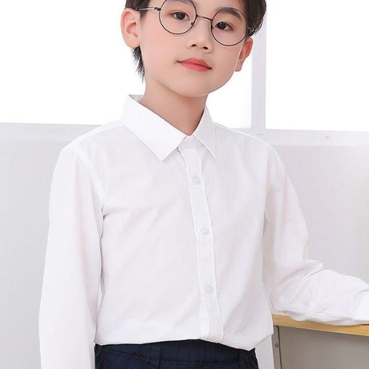 キッズサイズ通園・通学・冠婚葬祭と使えるホワイト無地長袖/半袖シャツ
