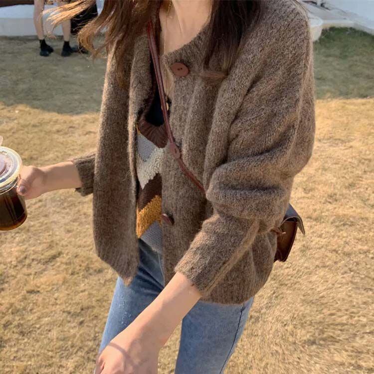 ニットソー レディース トップス ニットカーディガン カーディガン 春 長袖 アウター ニット 秋 ラウンドネック 冬 ふんわり 起毛 もこもこ シャギーニット 韓国 ルーズ 体型カバー#alice583003 | オキナ商店
