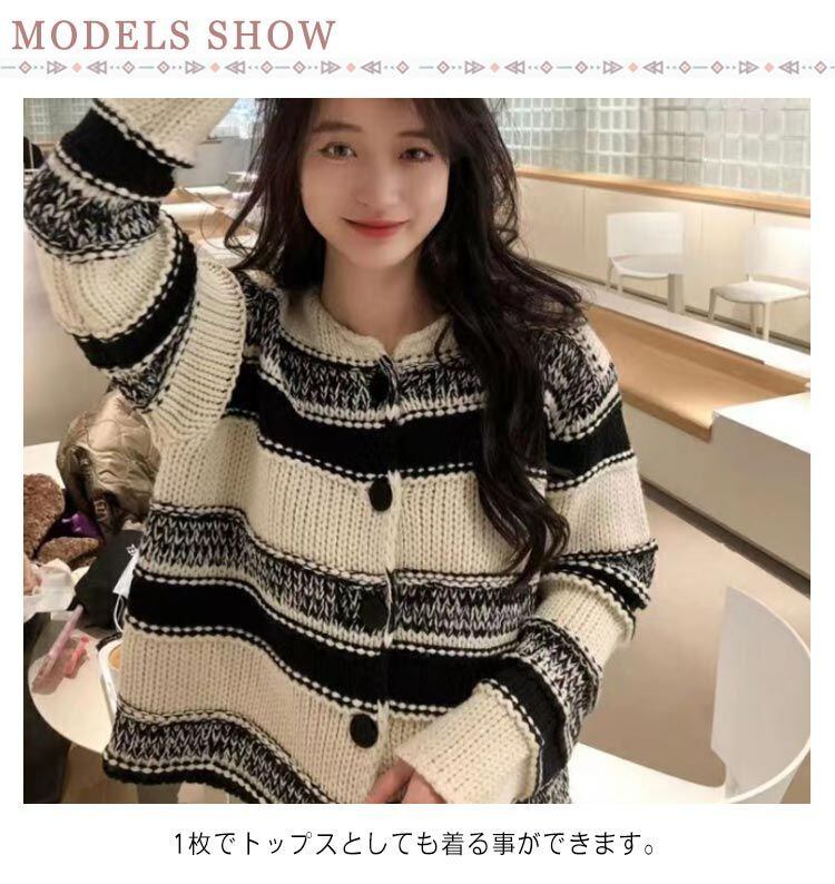 カーディガン セーター レディース トップス ゆったり 長袖 ニット 前開き ボーダー お洒落 可愛い お出かけ ニット カーデ 通学 お出かけ 韓国ファッション 春 秋#alice582983 | オキナ商店