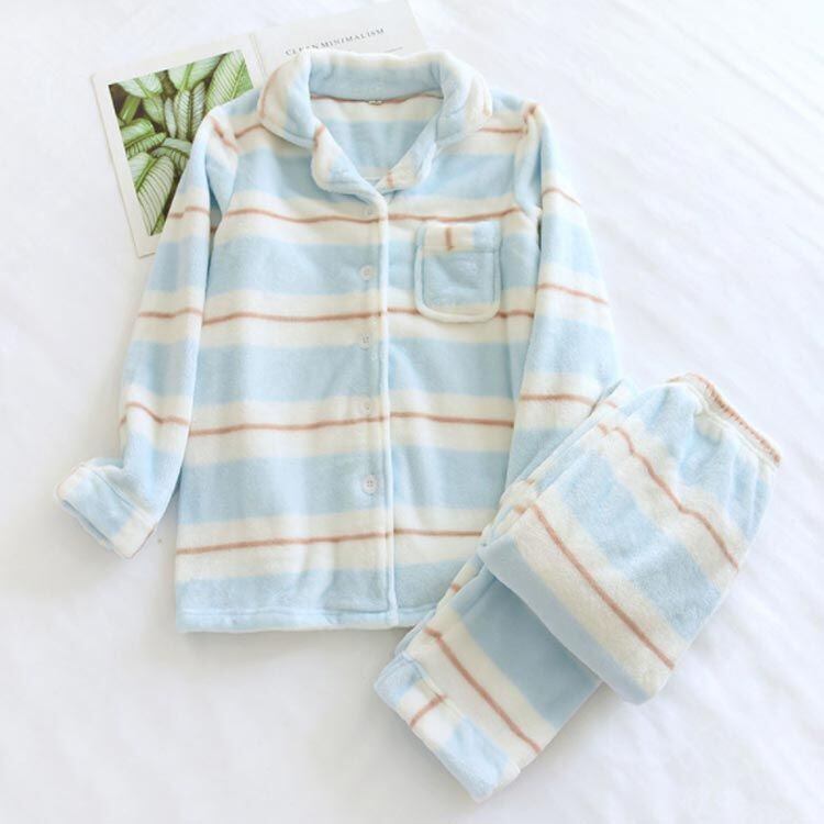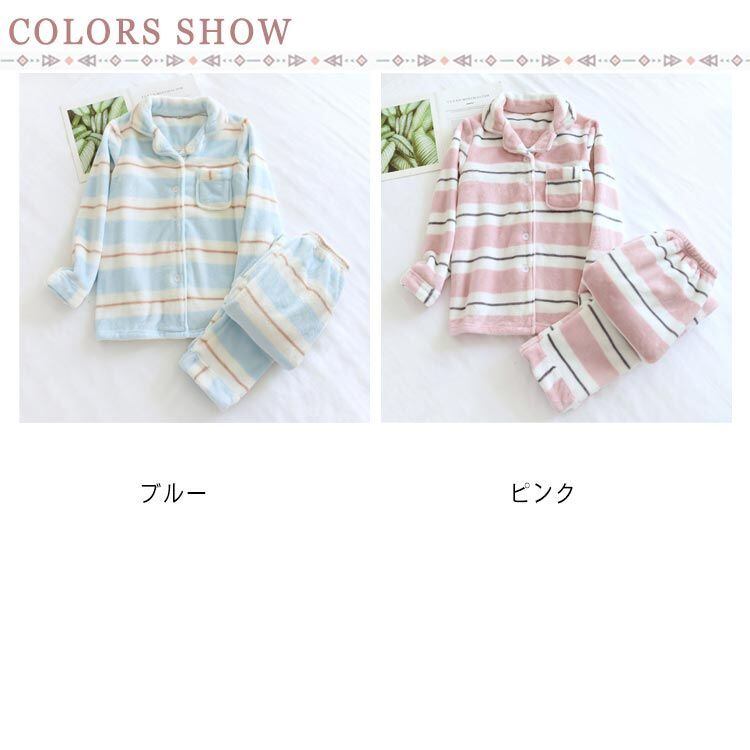 前開き もこもこ おしゃれ ブルー セットアップ 上下セット ルームウェア あったか パジャマ 部屋着 寝巻 ボーダー ピンク レディース ふんわり パジャマ 秋 冬 ギフト#alice582984 | オキナ商店