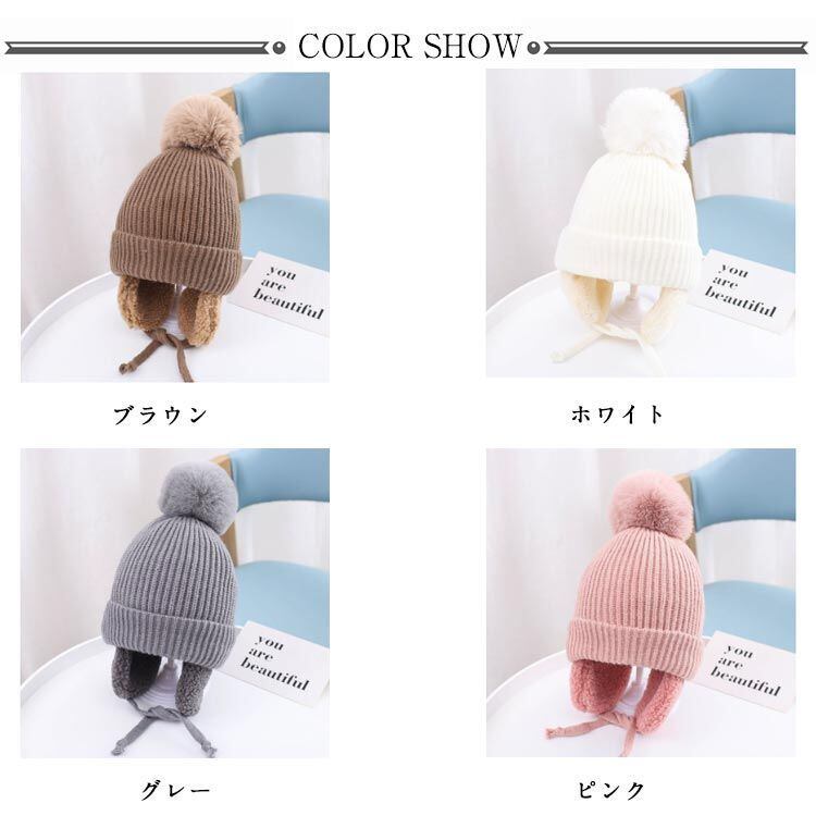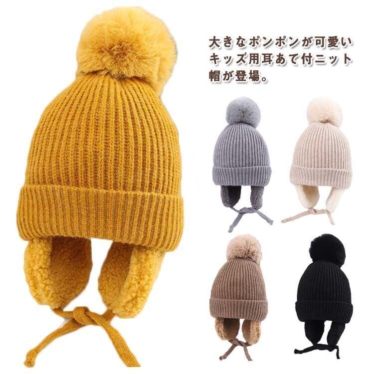 ・大きなポンポンが可愛いキッズ用耳あて付ニット帽が登場。