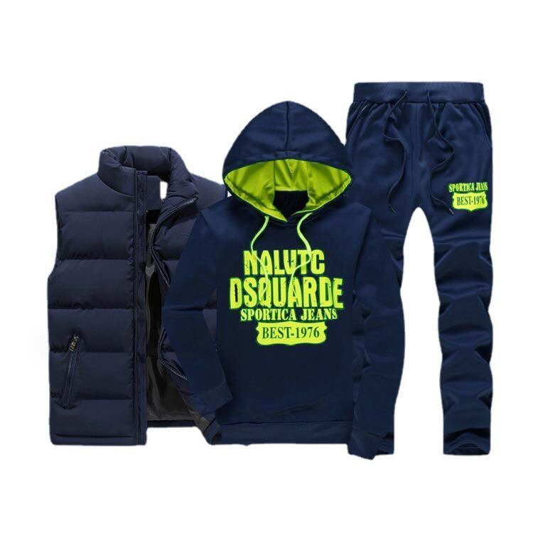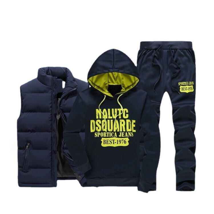メンズ スウェット セットアップ 上下セット 3点セット 中綿ベスト スウェットパンツ 長袖 パーカー フーディー ジャージ 大きいサイズ ジムウェア スポーツ カジュアル 英字 プリント#pdd5811 | オキナ商店