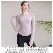 送料無料 ヨガウェア トップス 長袖 レディース カップ付き 指穴付き ホットヨガ リラックスヨガ スポーツウェア ヨガ パワーヨガ 空中ヨガ サップヨガ フィットネス ストレッチ ランニング インナ#yz0558 | オキナ商店