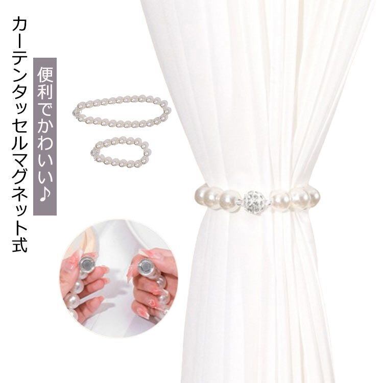 カーテンタッセル カーテン タッセル マグネット 2個セット カーテンホルダー ふさかけ おしゃれ カーテン留め パール 磁石 カーテン留め具 ホルダー マグネット式 ドレープ 留め シンプル インテ#ali896 | オキナ商店
