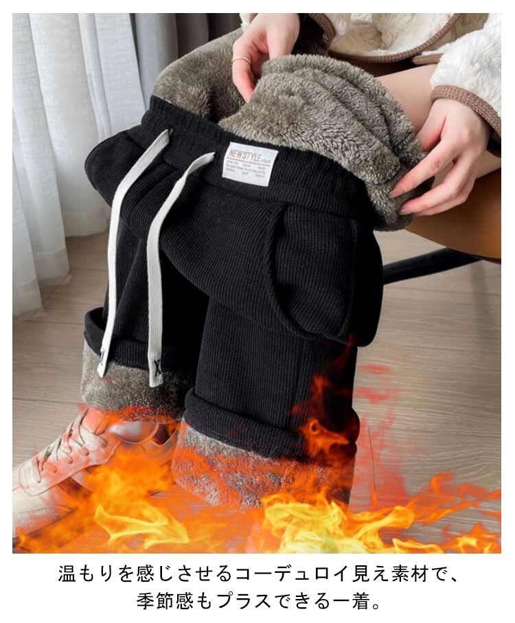 裏起毛 ワイドパンツ コーデュロイ 裏ボア コーデュロイパンツ レディース 秋冬 裏起毛パンツ もこもこ 厚手 極厚 あったか ボトムス イージーパンツ ゴムウエスト ハイウエスト ポケット付き 防寒#zyz9693 | オキナ商店