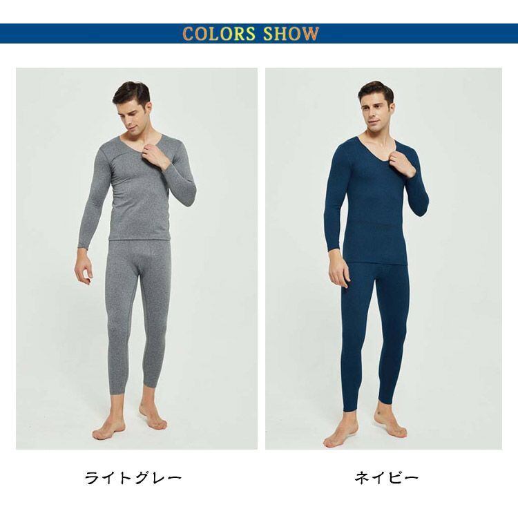 【上下セット】メンズ 裏起毛 インナー 両面起毛 ヒートテック あったかインナー 長袖 秋冬 Vネック 保温 肌着 下着 防寒 インナーシャツ レギンス パンツ 黒 暖かい 温かインナー 冬用インナー#pop2880 | オキナ商店