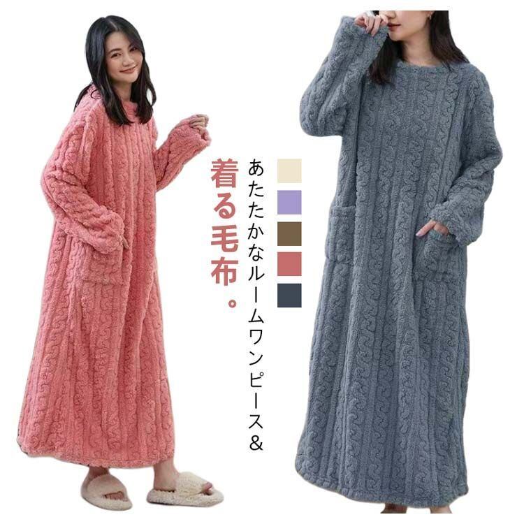 着る毛布 着るブランケット ルームウェア レディース ルームワンピース ボア フリース マイクロファイバー 裏起毛ワンピース 長袖 厚手 パジャマ ネグリジェ モコモコ 冬 可愛い ゆったり 部屋着 #zjjj3627 | オキナ商店