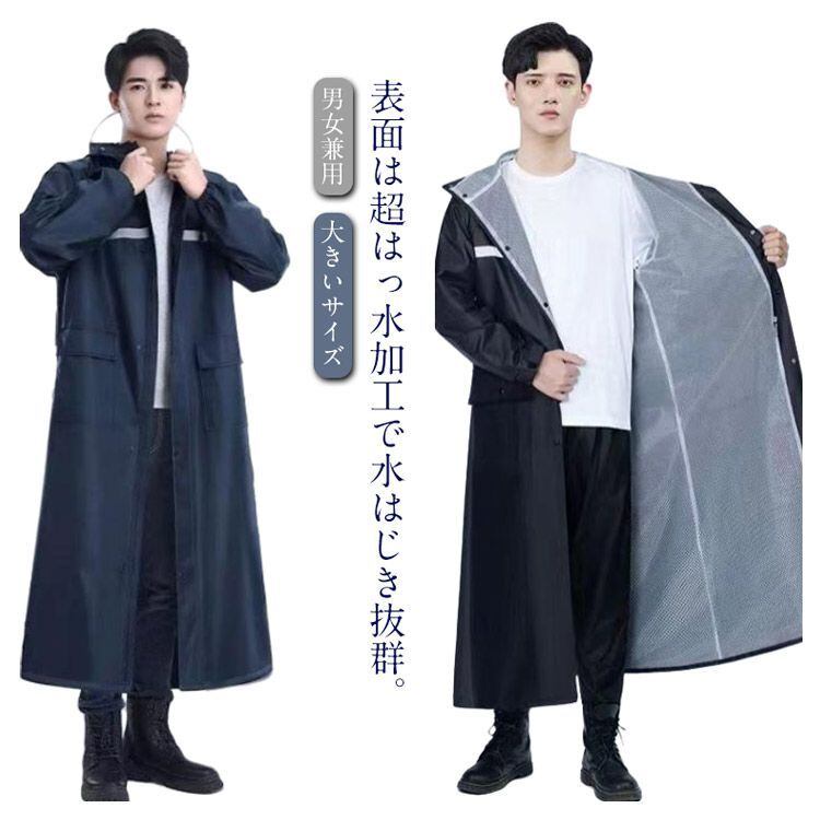 男性用 レインコート ロング丈 裏地メッシュ レインポンチョ メンズ レディース 袖付き 自転車 バイク ポンチョ カッパ 撥水 防水 防風 耐久 レインウェア 反射テープ 雨具 梅雨対策 男女兼用 #zjjj1935 | オキナ商店