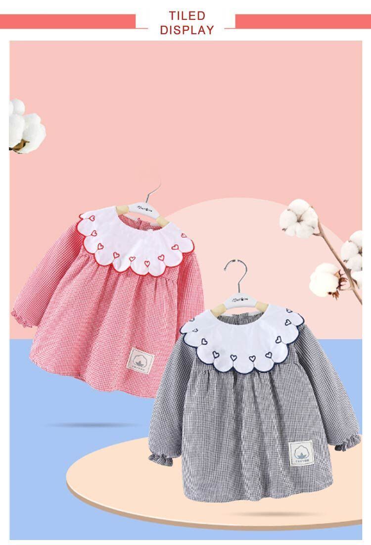 お洋服のような可愛いデザインの長袖スモック、女の子が大好きに間違いなし。