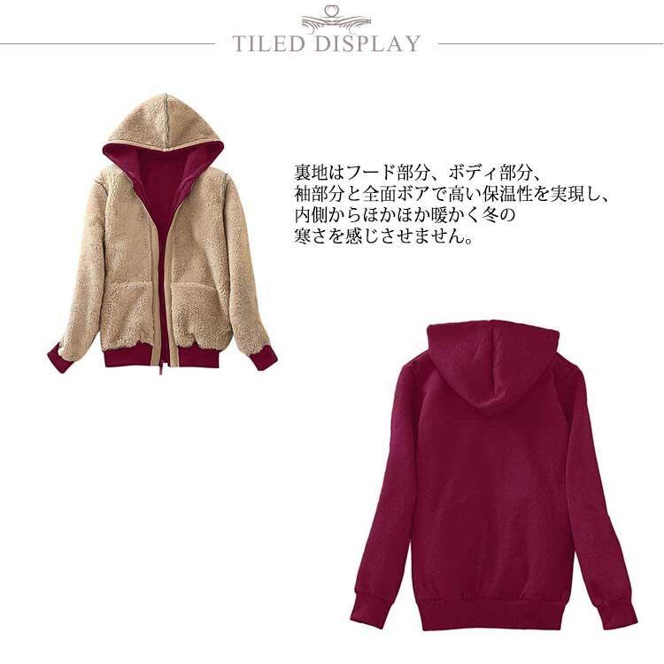裏地はフード部分、ボディ部分、袖部分と全面ボアで高い保温性を実現し、内側からほかほか暖かく冬の寒さを感じさせません。