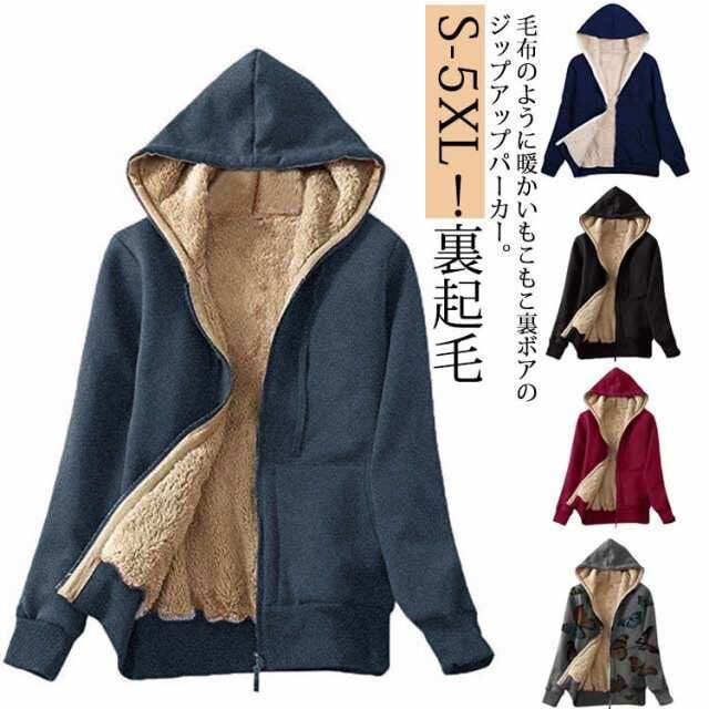 S-5XL!毛布のように暖かいもこもこ裏ボアのジップアップパーカー。