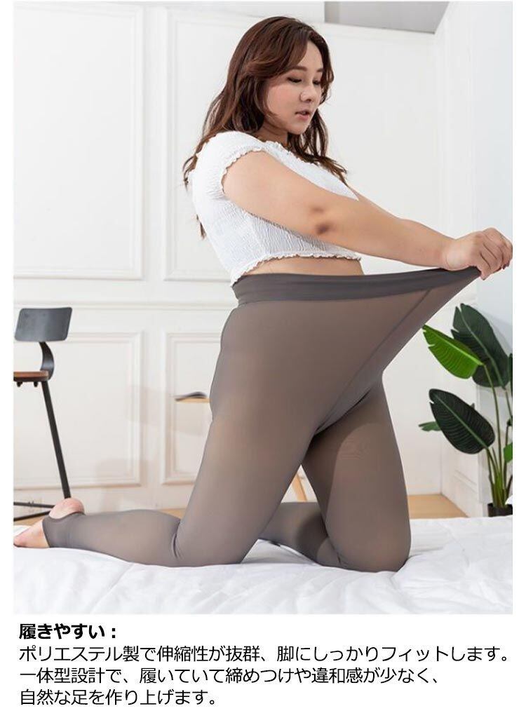 裏起毛タイツ:本製品は透けない素肌感のあるストッキング風着圧タイツです。裏地は肌触りが滑らかなふわふわ起毛生地を採用して、保温性が高く、あったか履き心地です。
