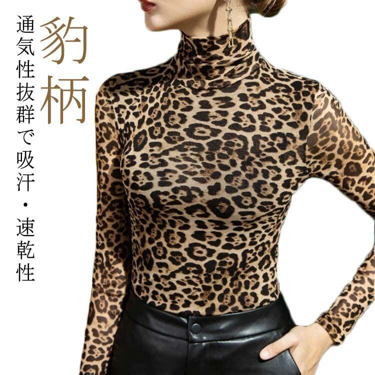 レディース トップス ハイネック 豹柄 インナー 日常着 通勤通学 社交ダンス トップス バレエ トップス ヨガ練習服 ヨガウェア モダンダンス レッスン着 ダンスウェア 踊りブラウス ダンス衣装 シ#yz4307 | オキナ商店
