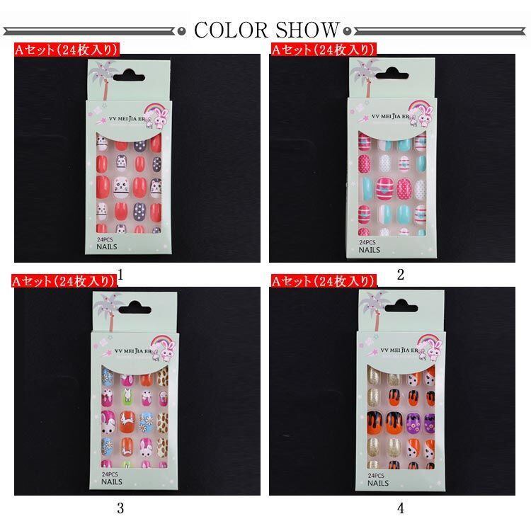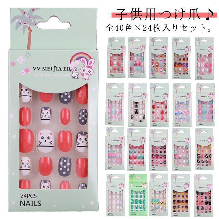 つけ爪 子供用 24枚入り 女の子 ネイルチップ キッズ用 送料無料 可愛い ネイルシール 貼るだけ 動物 キャラクター いちご ジェルネイル ショート シール ネイルチップ 子供用ネイルチップ 結婚#hakjf737 | オキナ商店