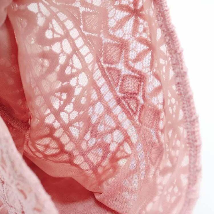 シースルーレースと花柄レースの2重構造、熱がこもらず、透けないのが嬉しいポイント。