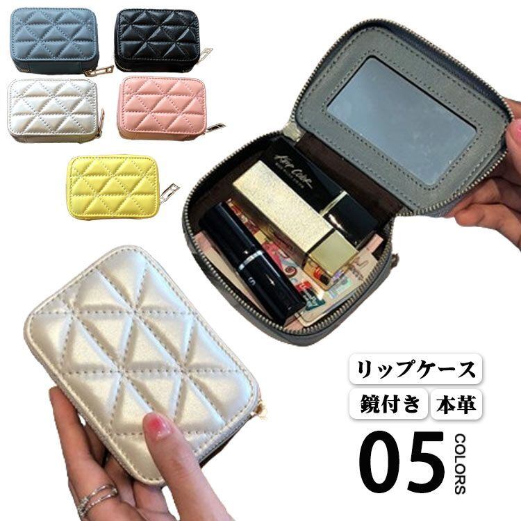 コスメポーチ 本革 リップケース 鏡付き 化粧ポーチ 持ち歩き レザー 口紅ケース ミラー付き 口紅入れ ミニポーチ 小さめ 高級感 小物入れ アクセサリーケース キルティング レザー おしゃれ か#cjfj140169 | オキナ商店