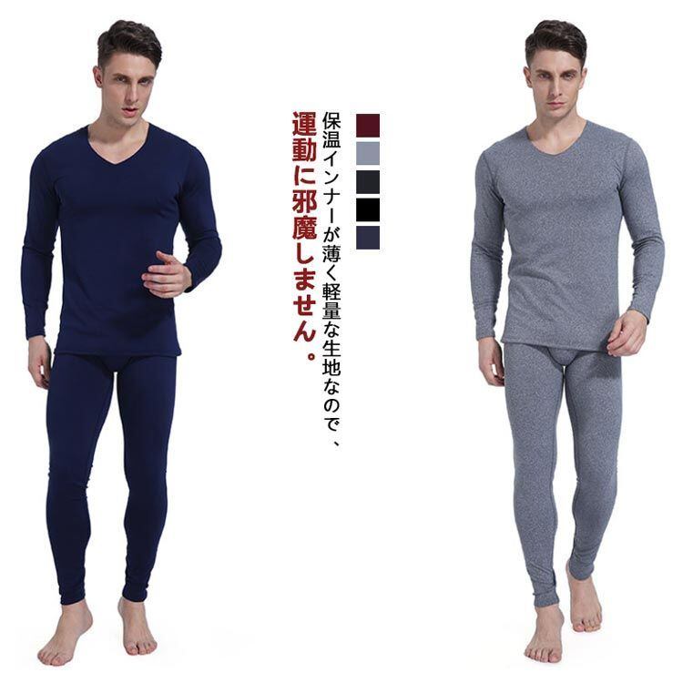 メンズ ヒートテック 秋冬 インナー上下セット 保温インナー 裏起毛 インナーウェア 防寒着 [防寒肌着・吸湿発熱・防寒・保温] あったかインナー 大きいサイズ 肌着 春 アンダーシャツ vネック#cjfj138151 | オキナ商店