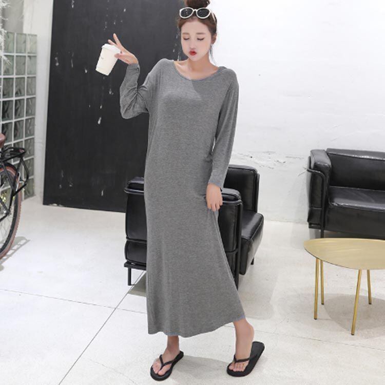 大人 Tシャツワンピース ロングTシャツ ロングTシャツワンピース 長袖 カットソー ロング丈 体型カバー 可愛い 春秋 ルームウエア ゆったり 韓国風 ワンピース ゆったり 体型カバー 無地 マ#cjfj136093 | オキナ商店