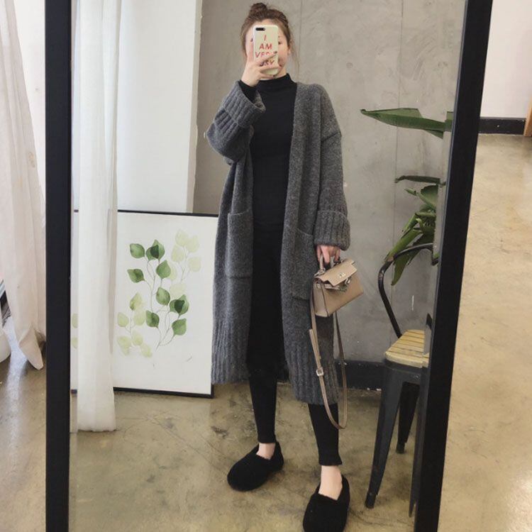 長袖 アウター ロング丈 レディース コート カーディガン コーディガン ニットカーディガン 羽織り ロングカーディガン ポケット付き トップス ニット 厚手 ロングリブ 暖かい 長袖 カーディガン #alice574391 | オキナ商店