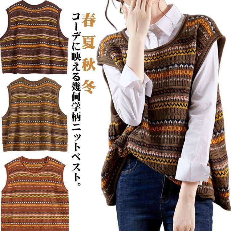 コーデに映える幾何学柄ニットベスト。