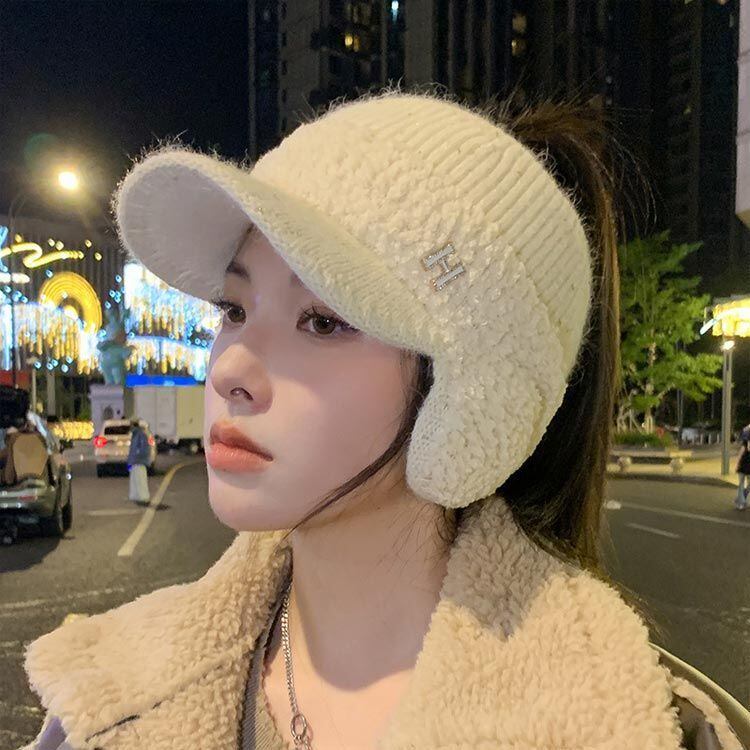 帽子 耳あて付き 秋冬 裏起毛 ニット帽 あったか レディース つば付き 防寒 秋 おしゃれ 帽子 ネックウォーマー 可愛い 暖かい リブ編み 冬 帽子 帽子 大きめ ニットキャップ 保温#alice574373 | オキナ商店