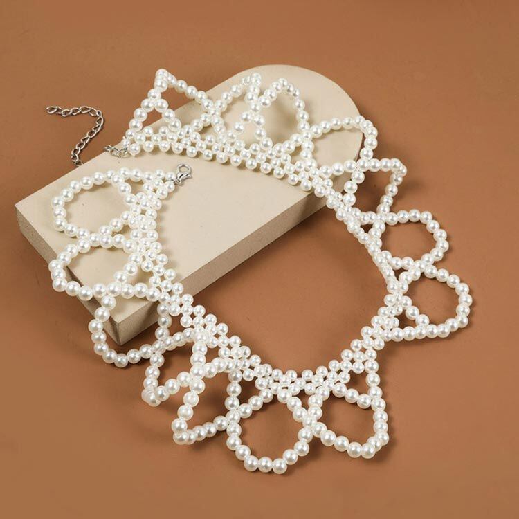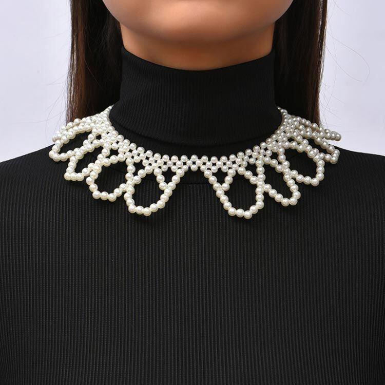パールカラーネックレス つけ襟 パール 小粒パール 大粒パール ネックレス フリル 結婚式 パールックレス ウェディング フォーマル 用 パール お出かけ パール付け襟 つけえり パールカラーネック#cjfj145294 | オキナ商店