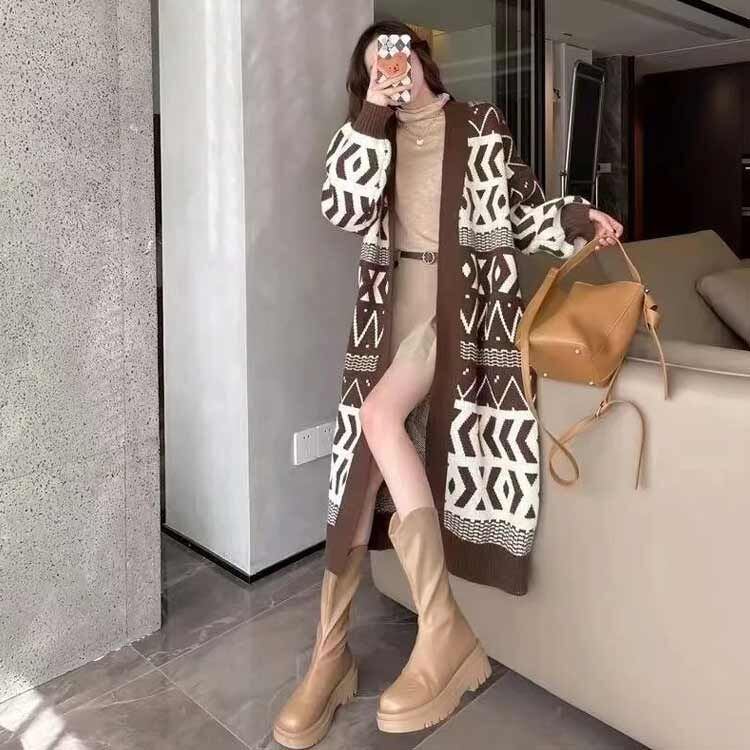 S-3XL!女子を可愛く魅せるケーブルニットのロングカーディガン。
