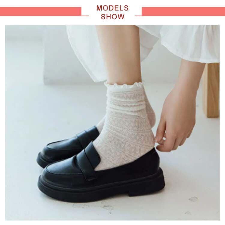 【フリル可愛い靴下】シンプルな色合いとちょっとしたフリルに中空柄で、普段の生活だけではなく、ちょっとした約束からデートや職場などの場合でも、カジュアルン使える。ファッションと活気を併せ持って、いろん洋服に合わせやすい。